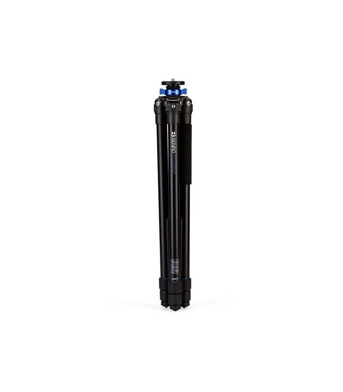 se suministra con doble columna central, una larga para conseguir la máxima altura y otra columna corta transportable en un compartimento de la bolsa que resulta ideal para tomas bajas, ya que permite bajar el trípode casi a ras de suelo en una altura de 41 cms.