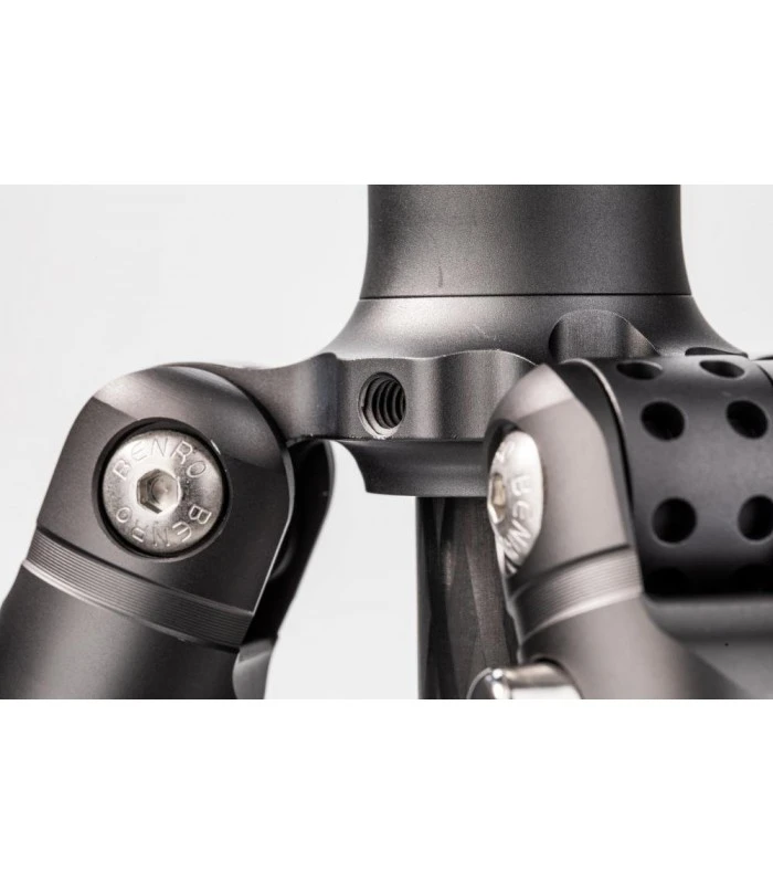 La exclusiva columna central consta de dos partes y se puede invertir rápida y fácilmente para poder disparar desde una perspectiva baja, como en la fotografía macro. La altura del trípode desplegado es de 130,5 cm y tras extender la columna central aumenta a 165,5 cm. La columna central también forma parte de un monopié que se puede obtener montándolo con una de las patas desmontables.
