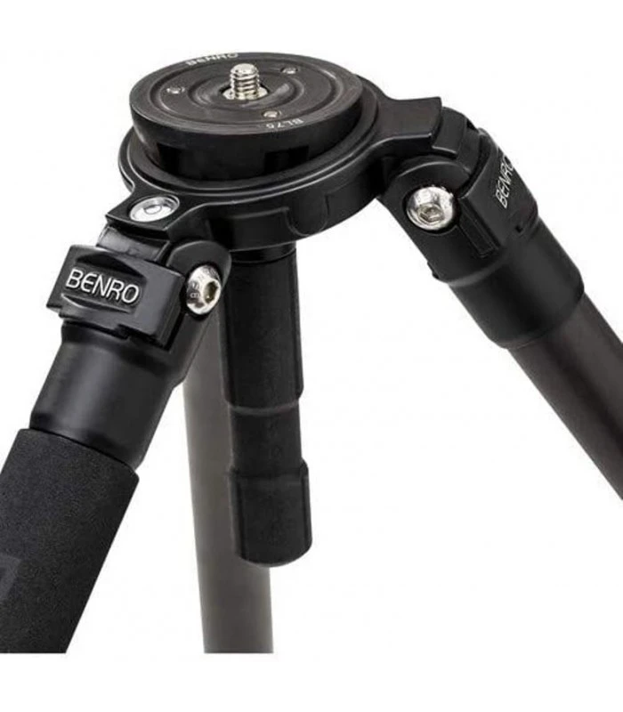 El sistema versátil tiene un diseño compacto con patas de un solo tubo de 2 etapas / 3 secciones y pies de goma y con púas para usar en prácticamente todas las superficies. Cada pata del trípode se puede ajustar de forma independiente en tres posiciones, lo que le permite configurar de forma rápida y eficiente. El diseño de fibra de carbono del trípode asegura una mejor absorción de vibraciones y resistencia a la corrosión del agua salada, algo a tener en cuenta si dispara en la playa cerca del agua. La fibra de carbono también es más ligera que el aluminio.