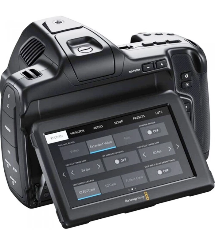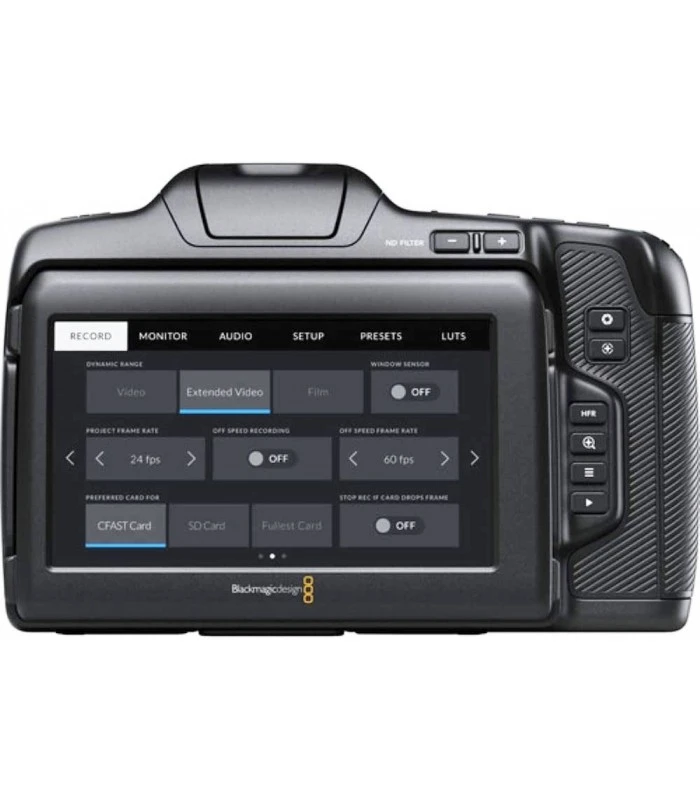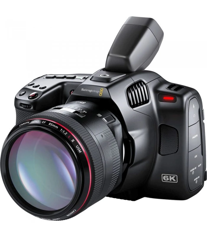 El compacto 6K Pro conserva los controles familiares y el diseño del menú del modelo 6K, como el soporte ISO de hasta 25,600, 13 paradas de rango dinámico y salida de monitor HDR de 1920 x 1080. El soporte de audio profesional ahora incluye dos entradas mini XLR con alimentación fantasma de +48 V, una entrada estéreo de 3,5 mm, un altavoz mono, una salida de auriculares y un sistema de micrófono estéreo incorporado.