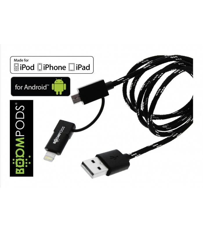 Cable Boompods Duo Negro 1m Microusb/apple/android