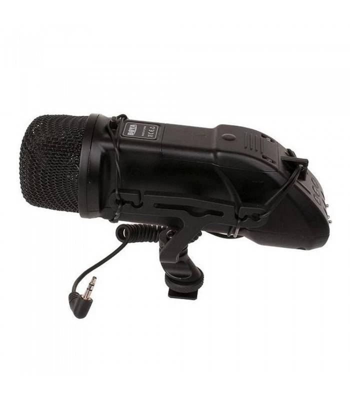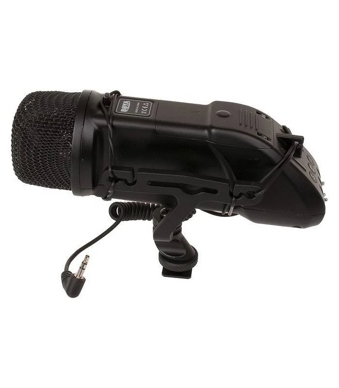 Se trata de un micrófono estéreo X/Y de condensador para cámaras de vídeo o cámaras de fotografía que permitan la captura de vídeos profesionales. Fabricado en aluminio y montado en una fijación anti-vibración con conector universal hot-shoe para fijar a zapata de flash de cámara de fotos o vídeo.