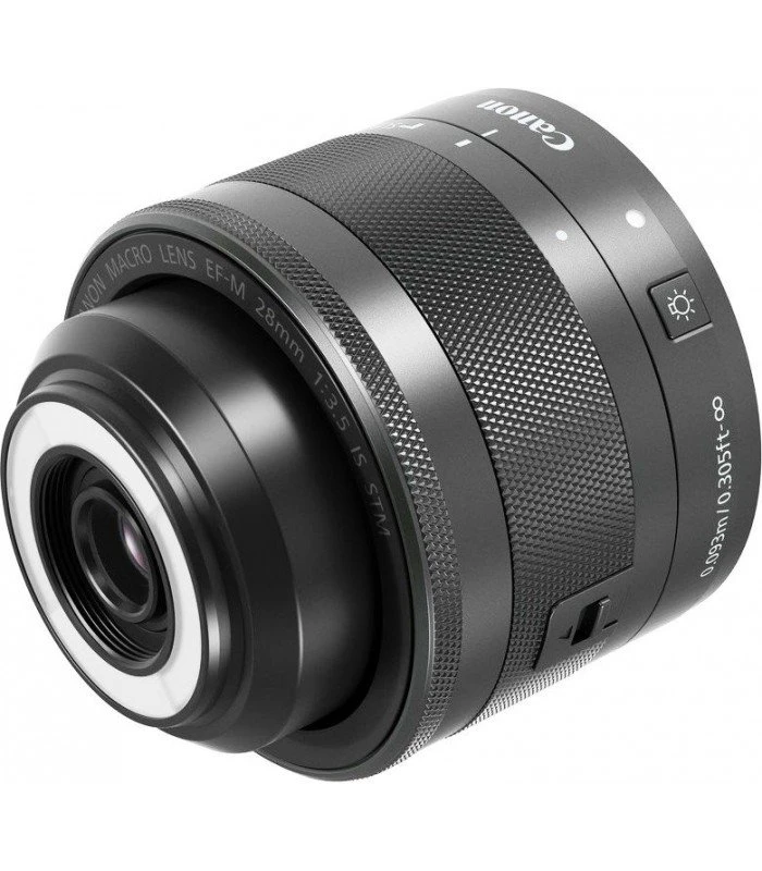 Compacto diseñado para macro fotografía, el EF-M 28mm f / 3.5 Macro IS STM de Canones un objetivo equivalente a 44.8mm diseñado para cámaras sin espejo EF-M de formato APS-C. Caracterizado por su aumento máximo de 1.2x y una distancia mínima de enfoque de 3.7 «, este elegante objetivo se distingue por su Macro Lite LED integrado para proporcionar iluminación adicional a sujetos de primer plano. Ayudando a su capacidad de reproducir objetos pequeños a mayor tamaño que el real, el el diseño óptico incorpora un elemento UD y dos elementos asféricos para reducir las aberraciones cromáticas y esféricas con el fin de proporcionar un alto grado de nitidez y claridad.