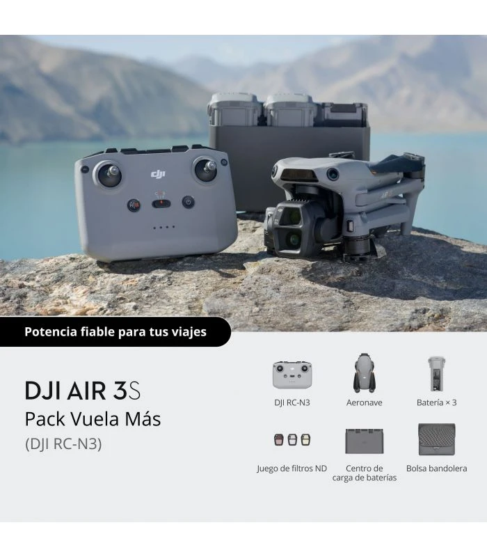 DJI Air 3S, un dron con doble cámara diseñado para la fotografía de viajes, integra una serie de tecnologías avanzadas. Con una cámara principal con sensor CMOS de 1 pulgada y una telecámara media de 70 mm, cada una de ellas con hasta 14 pasos de rango dinámico, el DJI Air 3S captura paisajes, retratos y mucho más con detalles increíbles. Las dos cámaras disponen de la nueva función Panorámica Libre, que permite seleccionar de forma flexible el rango de captura. Otras características destacadas adicionales incluyen la detección de obstáculos en escenas nocturnas y el RPO inteligente de última generación, para aumentar la seguridad durante la fotografía nocturna. En absolutamente todos los aspectos, DJI Air 3S está diseñado para maximizar cada momento en el aire.