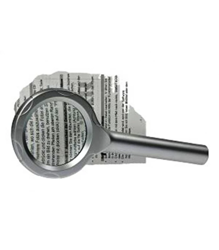 - Lupa de mano con 4 aumentos e iluminación LED incorporada. Diámetro de la lente: 65 mm