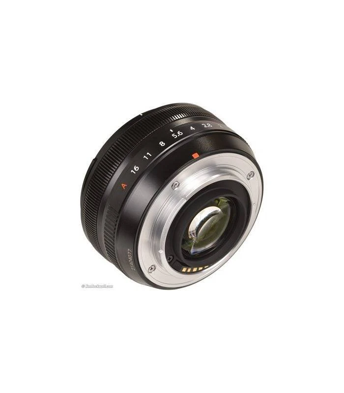 Para aprovechar el diseño sin espejo de las cámaras de la serie X, el elemento posterior de la lente está lo más cerca posible del sensor, lo que minimiza notablemente la distancia de enfoque posterior. La construcción de la lente incluye un barril de metal, recubrimiento Super EBC para un rendimiento óptico mejorado, y ofrece una resolución mejorada de centro a borde y brillo sin aberración cromática. El elemento final de la lente, posicionado lo más cerca posible del sensor, hace que el ángulo de incidencia de la luz que llega al sensor sea más pequeño y, por lo tanto, reduce el viñeteo y el sombreado de color, al tiempo que ayuda a mantener pequeño el tamaño general de la lente. Esta lente tiene una ampliación máxima de 0.14x, y el anillo de apertura tiene topes de clic de 1/3 para exposiciones más precisas.