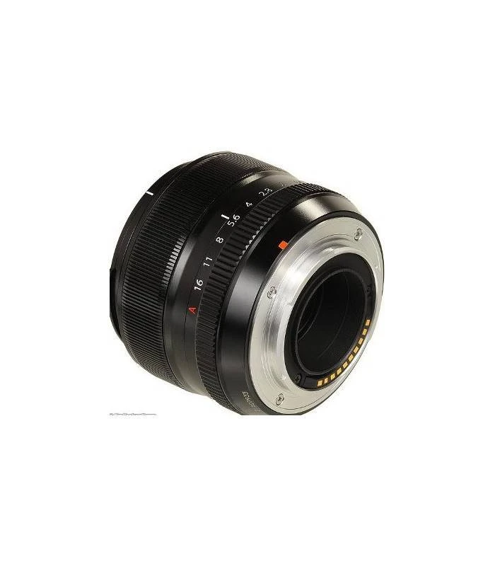 Para aprovechar el diseño sin espejo de las cámaras de la serie X, el elemento posterior de la lente está lo más cerca posible del sensor, lo que minimiza notablemente la distancia de enfoque posterior. La construcción de la lente incluye un barril de metal, recubrimiento Super EBC para un rendimiento óptico mejorado, y ofrece una resolución mejorada de centro a borde y brillo sin aberración cromática. Esta lente tiene una ampliación máxima de 0.17x, y el anillo de apertura tiene topes de clic de 1/3 para exposiciones más precisas.