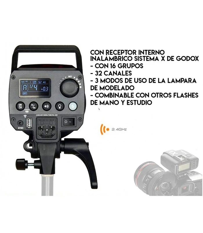 - Luz de modelado de 150W, regulable de 5 a 100%