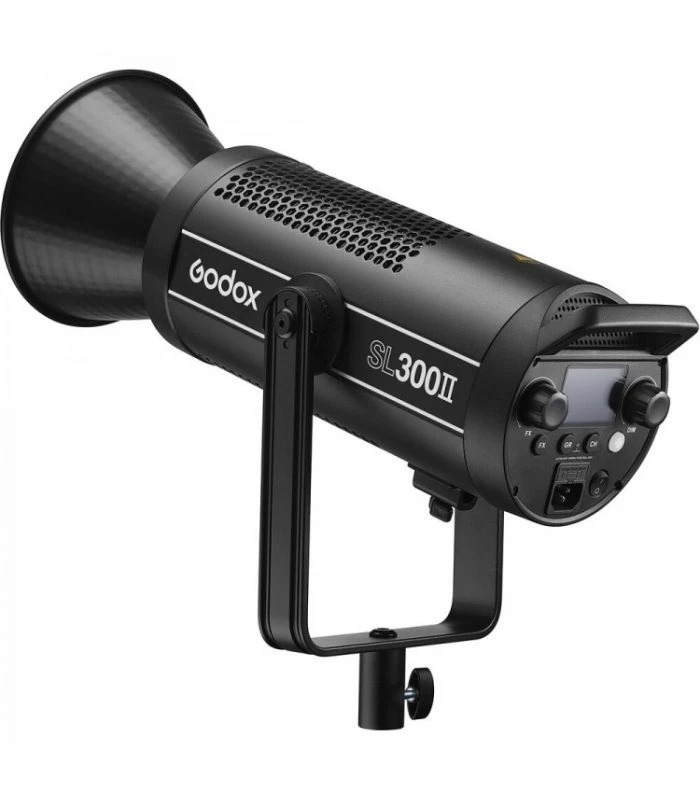 - La luz LED continua Godox SL300II es una unidad de 300 W adecuada para televisión, cinematografía, transmisión en línea y otras aplicaciones de cine y fotografía. También funcionará bien para entrevistas y reportajes, debido a su capacidad para apagar el ventilador y el funcionamiento silencioso. Los ajustes de brillo van desde el 0% hasta la máxima potencia, también existe la posibilidad de controlarlo con un mando a distancia, y el conjunto incluye un nuevo tipo de reflector, con el que la luz alcanza hasta los 99.300 lux.