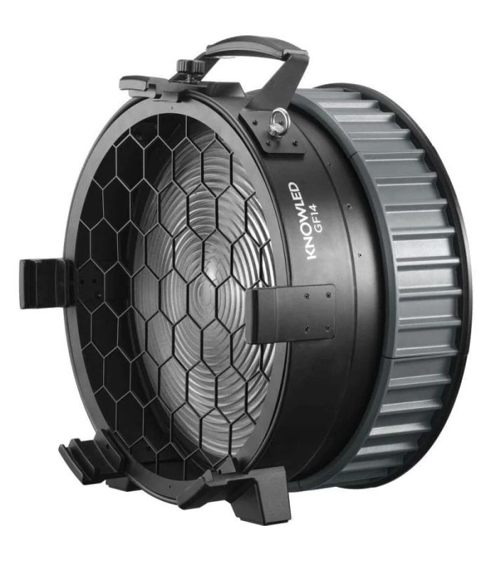 - Una lente especialmente diseñada para la luz Godox KNOWLED MG1200Bi. El GF14 aumenta la intensidad luminosa máxima a 78800 lux a una distancia de 3 metros, lo que permite enfocar o ampliar el haz de luz.