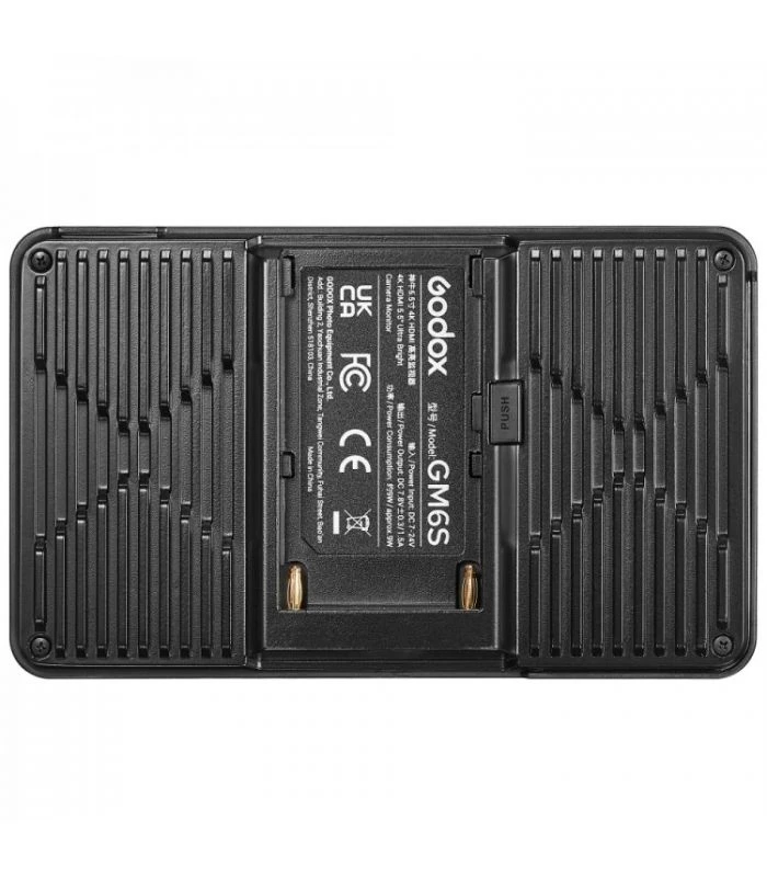 - Godox GM6S es un monitor de cámara ligero de 5,5 pulgadas equipado con una pantalla mejorada con un brillo de 1200 cd / m². La entrada y salida HDMI admite video DCI y UHD 4K. Una interfaz de control de cámara está disponible para transferir la configuración desde el monitor a través de cables disponibles por separado. Un conector para auriculares de 3,5 mm emite una señal para el control de audio en el set. Se pueden cargar hasta veinticinco LUT 3D en el monitor utilizando la ranura para tarjetas SD.