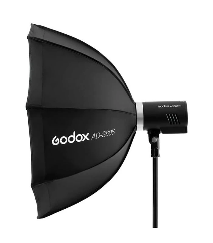 - Softbox AD-S60S es un modificador ligero y compacto diseñado para unidades de flash de montaje Godox como AD300Pro y AD400Pro. También se adapta a las lámparas de luz continua ML60.
