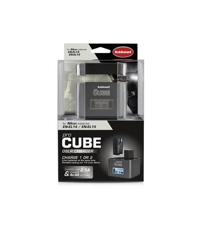 Hahnel HL-ProCube – Cargador de baterías para NikonEl Hahnel ProCube DSLR Cargador Para Nikon es una estación de carga para una selección de baterías de Ion Litio de Canon y Nikon. Puedes usar este cargador para dos baterías Canon LP-E6 o LP-E8 o dos Nikon EN-EL14 o EN-EL15 a la misma vez.
