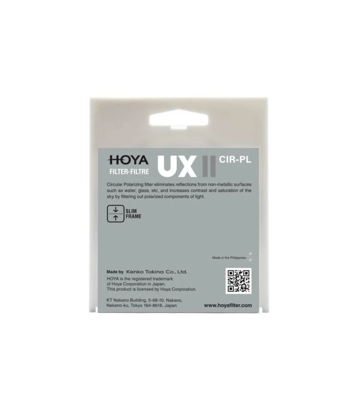 El filtro UX II CIR-PL se puede utilizar tanto con cámaras de película como digitales. La estructura de los filtros polarizadores incorpora una película polarizadora entre los dos cristales y el marco frontal está diseñado para girar, lo que permite colocar la película polarizadora en el ángulo deseado.