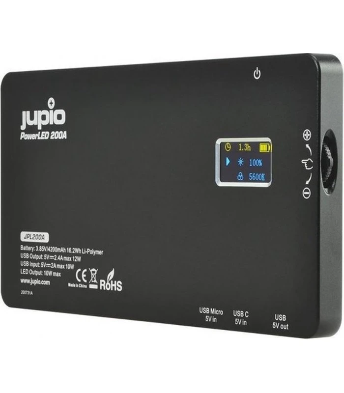 - El Jupio PowerLED 200 es una luz LED portátil y un banco de energía en una carcasa de aluminio sólido.