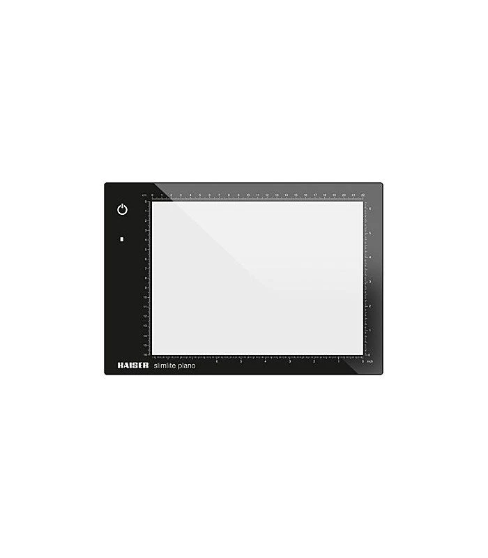 Iluminación LED ajustada a luz de día, portabilidad gracias a su perfil extremadamente fino, alimentación por batería, corriente o USB y control táctil de la intensidad de la iluminación; estas características hacen de las mesas de luz Kaiser slimlite plano una solución única para la organización y visualización de originales transparentes y diapositivas, a un precio realmente increíble.