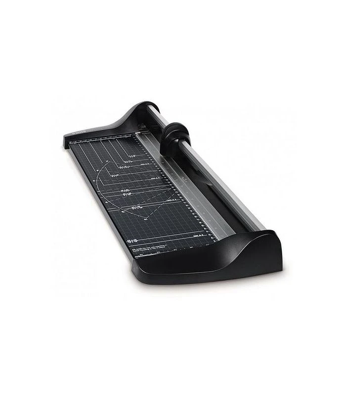 - Robusta mesa de corte fabricada en metal, con escalas impresas, marcas de formato, grados y rejilla fina.
