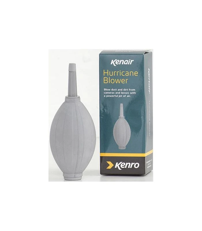 - El Kenro Hurricane Blower consta de un práctico sistema de doble válvula que produce un potente chorro de aire para expulsar la suciedad, el polvo y las pelusas de cámaras y lentes. Un kit esencial para el estuche de cualquier fotógrafo. El Hurricane Blower produce un potente chorro de aire a través de un sistema de válvulas de doble cara. Al apretar la pera de goma se producirá una ráfaga de aire controlada para eliminar cualquier residuo de las superficies sensibles.