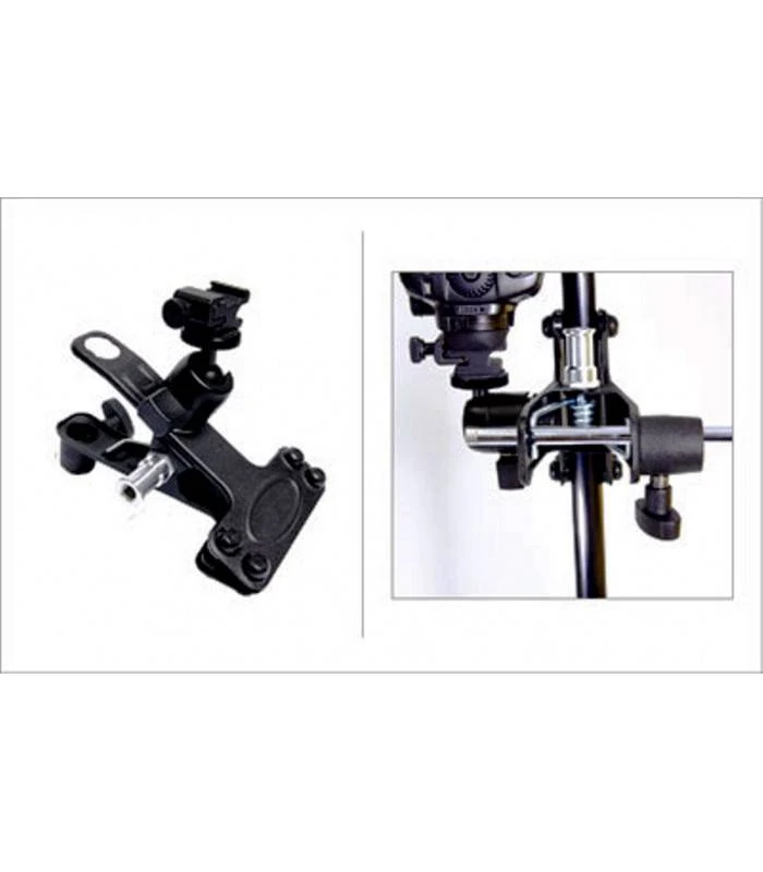El perno de 16 mm con 3 / 8»thread agujero y los enchufes conectados con la abrazadera se pueden conectar con soportes de luz y unbrella.