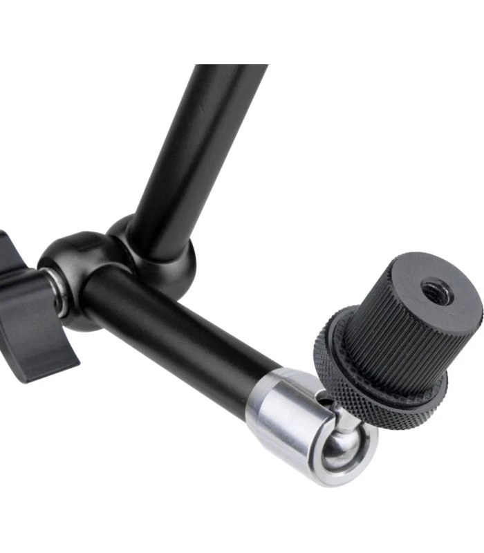 - Este brazo articular diseñado con precisión está diseñado para sostener monitores de campo o accesorios. Las dos roscas de 1/4 «-20 en cada extremo están unidas a la rótula que se puede girar 360 grados, y un recorte en la manga que rodea la bola permite que la rosca se gire 90 grados.