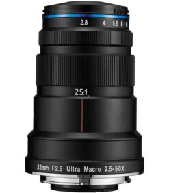 Dedicado a las imágenes de primeros planos extremos, el Canon RF-mount Laowa 25mm f/2.8 2.5-5X Ultra Macro de Venus Opticses un objetivo macro especializado para fotografiar sujetos con aumentos superiores al tamaño real. Operando dentro de un rango de 2.5:1 a 5:1, esta lente tiene una distancia de enfoque mínima de solo 6.8″ con un aumento de 5:1 junto con una cómoda distancia de trabajo de 1.6″. Este rango también se ve beneficiado por la distancia focal de gran angular, para lograr una mayor profundidad de campo en comparación con las lentes macro de distancia focal larga. Complementando las capacidades de primeros planos, el diseño óptico incorpora un elemento de dispersión extra baja para reducir las franjas de color y las aberraciones cromáticas para un alto grado de claridad. Además, al distinguirse de otros lentes macro, este 25 mm f/2.8 se caracteriza por su diseño notablemente elegante y liviano para un manejo más fácil y más espacio para trabajar con iluminación artificial.