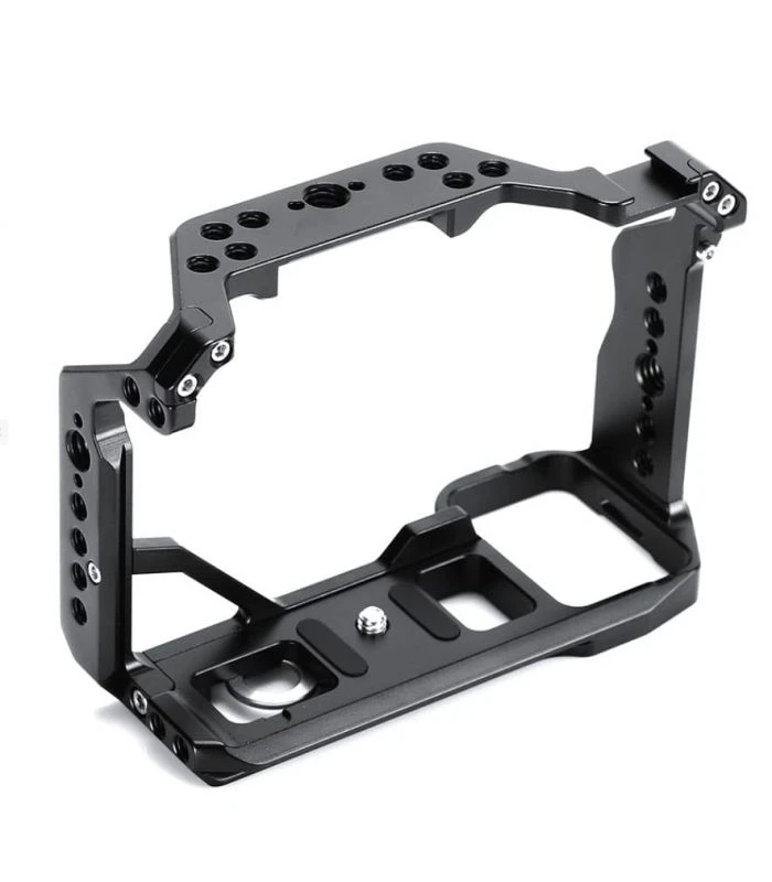 El armazón tiene espacio para el soporte de la zapata de la cámara y la ranura de la batería y un soporte de zapata fría en el lateral