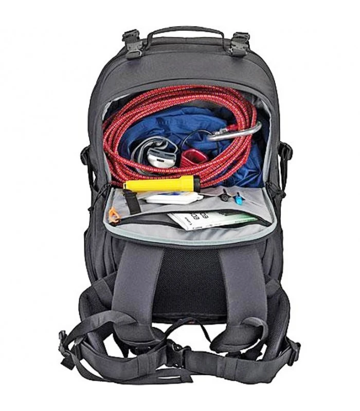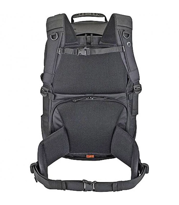 La mochila tiene una funda All Weather para proteger su equipo en condiciones extremas. Un montaje de trípode oculto permite que un trípode cuelgue en la parte frontal de la bolsa. Se transporta mediante un sistema ergonómico de arnés ajustable de ocho puntos con forro DryFlo que distribuye el peso de manera uniforme y permite un confort transpirable.