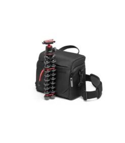 Los divisores ajustables le permiten personalizar el bolsillo interior para que se adapte a tu equipo y la solapa se abre lejos de su cuerpo para no estorbar cuando necesitas moverte rápidamente. A través de una correa de conexión para trípodes en la parte delantera, puedes llevar contigo tu trípode pequeño favorito fijándolo fácilmente con un cordón elástico rojo. Otra característica destacada es la correa de hombro acolchada y extraíble para una mayor flexibilidad.