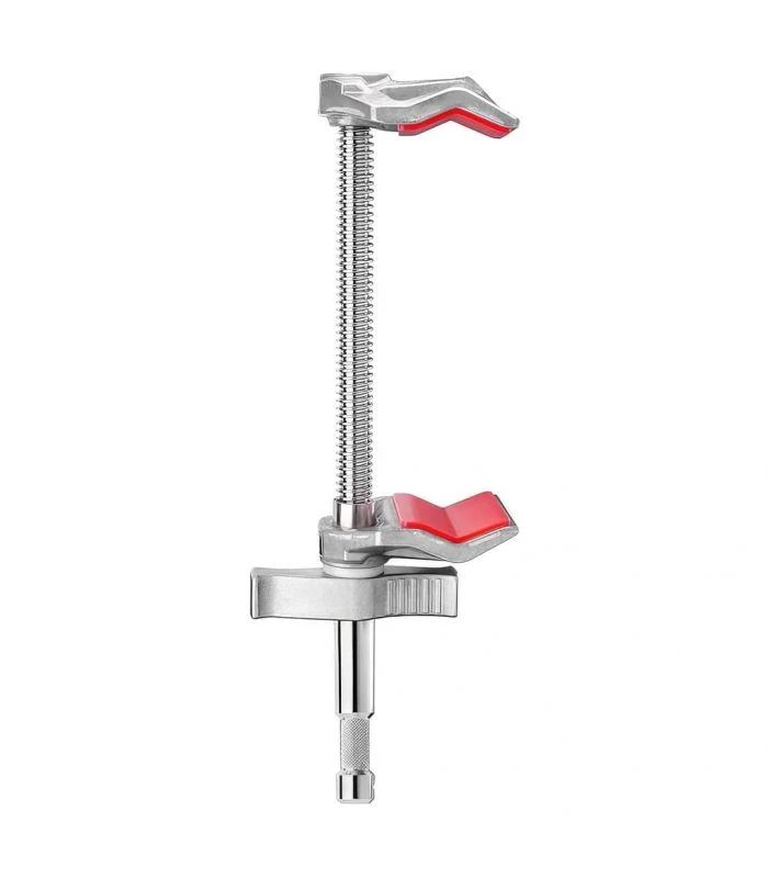La abrazadera Manfrotto C152EJ End Vice Jaw de 6 pulgadas es una abrazadera de mandíbula extremadamente útil con una longitud de 30 cm , una apertura de hasta 15 cm y una capacidad de carga máxima de hasta 50 kg . La abrazadera cuenta con una mandíbula fija en el extremo de la varilla roscada, ideal para colocarla en espacios reducidos, y un vástago de 16 mm (5/8 de pulgada) para compatibilidad con soportes de accesorios y luces de estudio estándar.