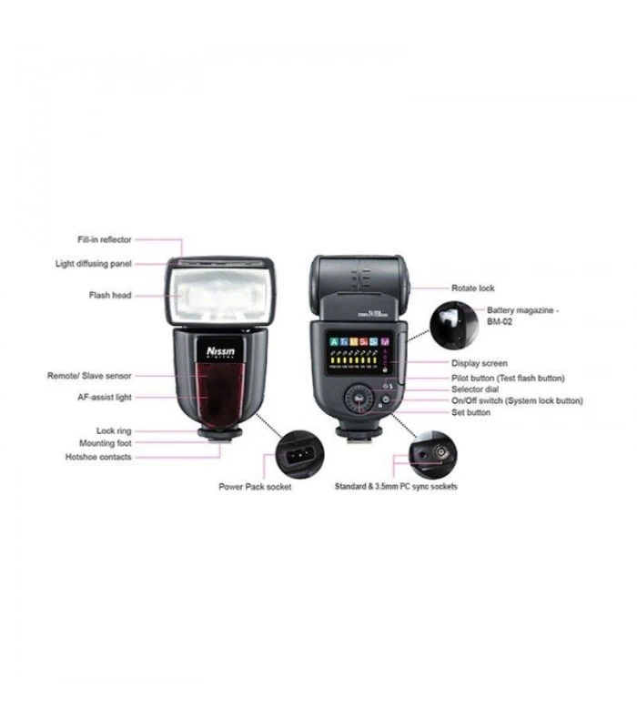 - Heredero del diseño de carga rápida del flash Nissin DI 866 Mark II. El nuevo diseño del magazine de baterías encaja perfectamente con el diseño estilizado del flash Nissin Di 700.