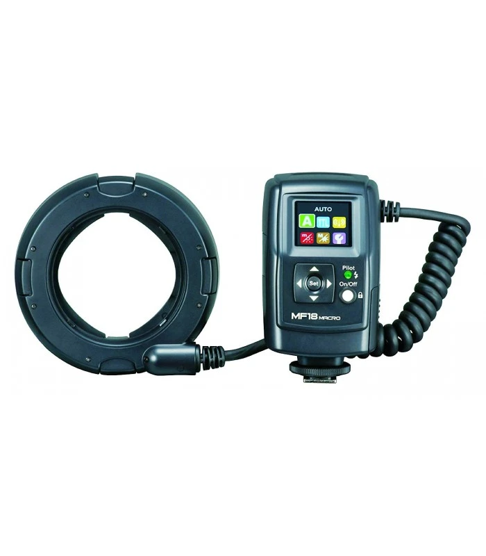 El Nissin MF18 Macro Ring Flash para Nikon es un flash de luz de anillo, diseñado específicamente para su uso con cámaras Nikon con capacidades i-TTL. Con un modo de Macro Fina, este flash proporciona un control de luz de alta precisión de 1/128 a 1/1204 en pasos de 1/6 EV, para lograr la mayor precisión. Cuando se usa en modo manual, el flash se puede ajustar en pasos de 1/3 EV desde potencia máxima hasta 1/64 de potencia. El diseño del flash del tubo se divide por la mitad, lo que le permite variar la salida de luz según las condiciones de iluminación. Este diseño también funciona junto con el cabezal del flash de expansión, lo que permite el uso de este flash en lentes que varían de 49 mm a 82 mm de diámetro.