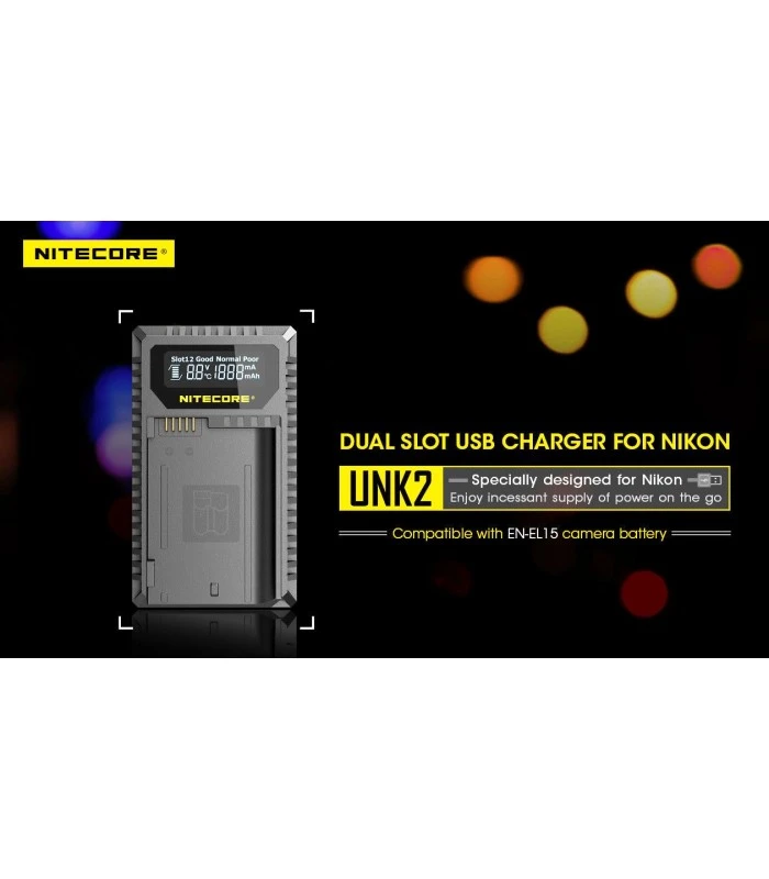 NITECORE UNK2 CARGADOR NIKON EN-EL15 DUAL(2BATERIAS 1 USB)