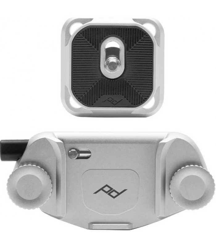 Con estabilidad de unión y acceso rápido, el Capture Camera Clip v3 plateado de Peak Design es un sistema de arnés para equipo profesional que está diseñado para resistir fuerzas de hasta 200 lb. El componente principal es un clip metálico duradero, que utiliza tornillos de mariposa o cabeza hexagonal incluidos pernos para sujetar en cualquier correa o correa con un ancho de 2.5 «y un grosor de 0.87». Junto con él, se encuentra una placa de liberación rápida compatible con Arca que se desliza sobre el clip para bloquear el movimiento en las cuatro direcciones, y cuenta con cuatro bucles para unir los anclajes opcionales de Peak Design.