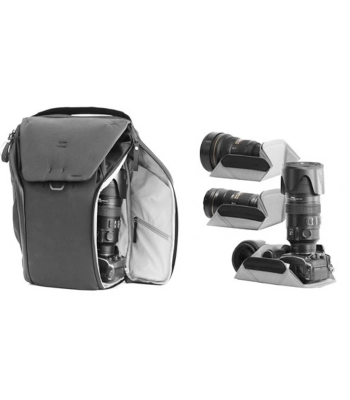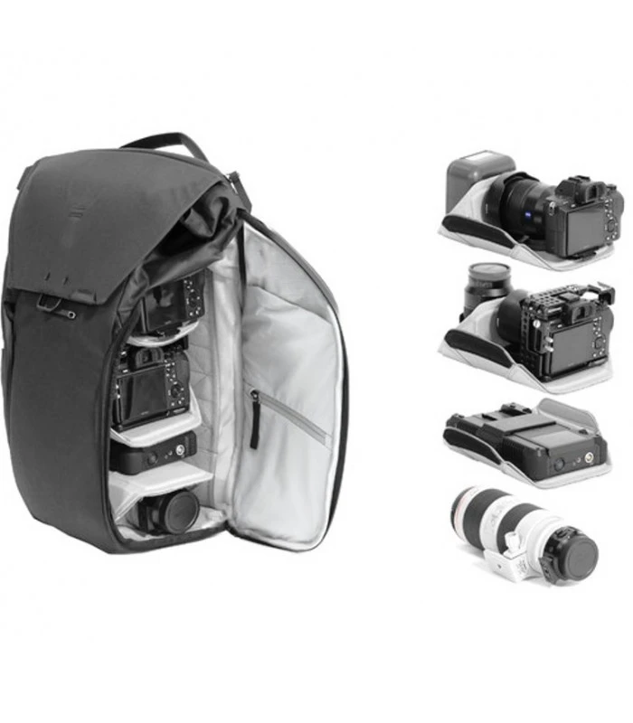 Esta mochila Everyday v2 negra de 20 litros de Peak Designes una bolsa versátil diseñada para fotógrafos, creadores multimedia o cualquier persona cuyos requisitos de transporte puedan beneficiarse de su diseño compresible de tamaño ajustable que minimiza el volumen o se puede expandir según sea necesario. Múltiples cierres magnéticos para su solapa superior permiten que esta mochila varíe de 18.3 «a 22.3» de altura, mientras que en el interior, tres divisores permiten que los artículos se apilen dentro del compartimento principal. Los divisores también cuentan con superficies plegables que se pueden configurar para amortiguar y sostener artículos contra cualquiera de las aberturas laterales con cremallera del Everyday Backpack v2. Dado que las aberturas laterales están posicionadas para enfrentar al usuario cuando la bolsa se gira de atrás hacia adelante con cualquiera de los lados hacia arriba, los divisores brindan la capacidad de garantizar qué elementos se pueden acceder más rápidamente desde los lados de la bolsa.