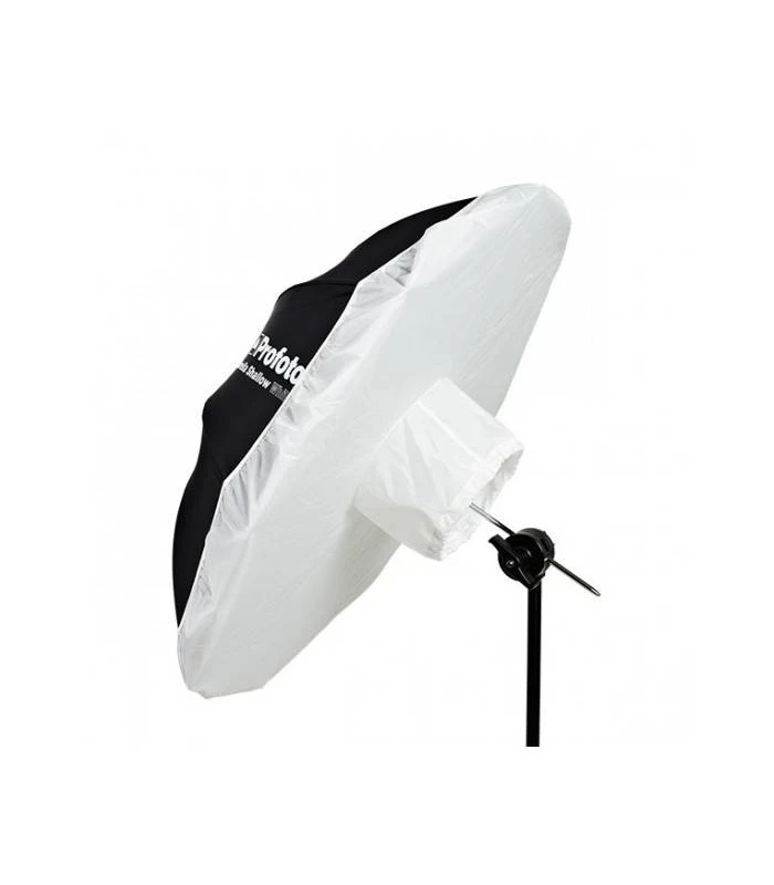 Un simple aunque ingenioso accesorio que se pone sobre la parte delantera de un paraguas blanco o plata para convertirlo en una gran softbox