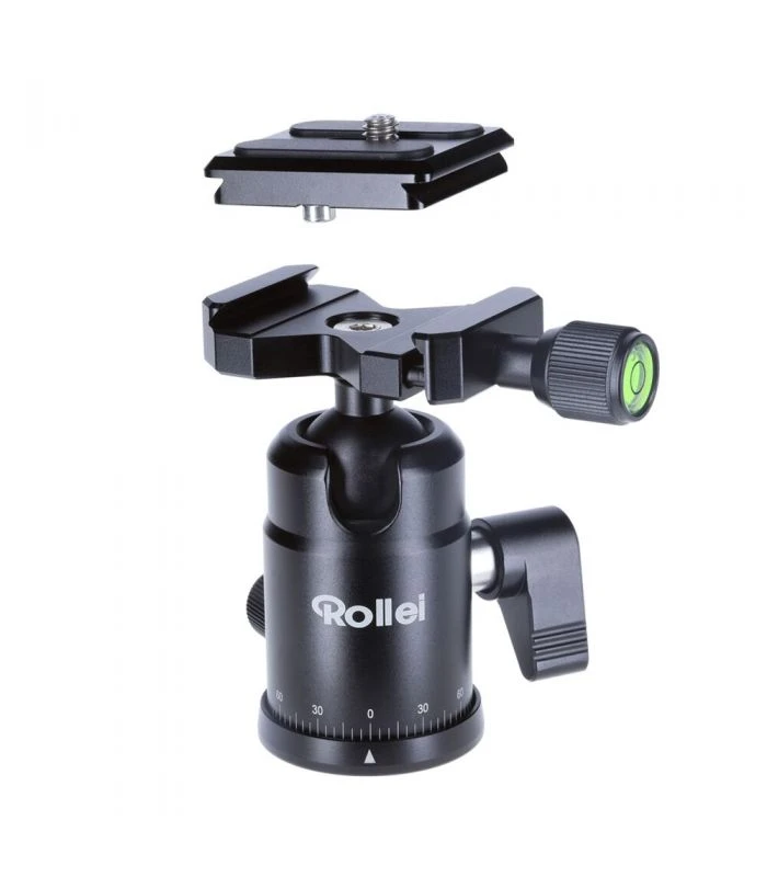 El cabezal esférico panorámico de 360° del Rollei Compact Traveler No. 1 Carbon puede acomodar fácilmente incluso carcasas SLR profesionales con lentes supertelefoto y otros accesorios utilizando la placa de liberación rápida estandarizada y compatible con Arca Swiss y permite cambios rápidos de sujeto. Los picos estables con tapas de extremo suaves garantizan una posición firme en cualquier superficie, un gancho que gira libremente en la columna central aumenta aún más la estabilidad cuando colocas tu bolso de cámara o cualquier peso en él.