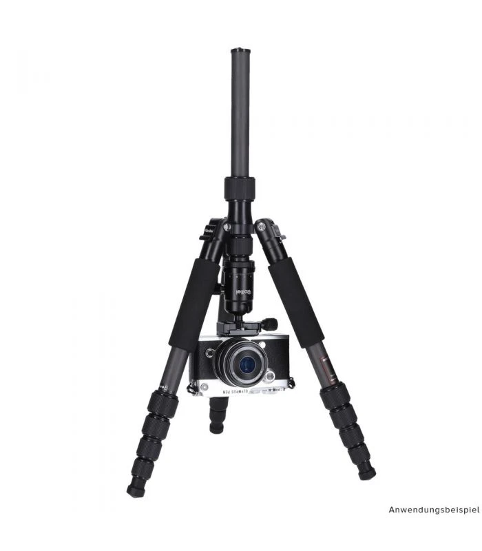 Rollei ha vuelto a abordar de forma intensiva cada uno de estos tres requisitos aparentemente contradictorios: el Rollei Compact Traveler No. 1 Carbon literalmente revoluciona el diseño convencional de los trípodes: las patas del trípode extensibles en cuatro direcciones se pueden girar 180 grados y permiten un tamaño de paquete sorprendentemente pequeño de solo 33 cm. En combinación con el carbono, un material de alta tecnología, muy estable y ligero, el peso total del Compact Traveler No. 1 menos de 1 kilogramo, más de 980 g, incluso el fotógrafo de viajes profesional no necesita guardarlo en su equipaje. El carbono del trípode de viaje Rollei también es responsable de la impresionante capacidad de carga de 8 kg, lo que corresponde a una relación peso/carga de 1/8. Las patas giratorias del trípode permiten incluso realizar fotografías macro a nivel del suelo, lo que de otro modo requeriría equipo adicional.