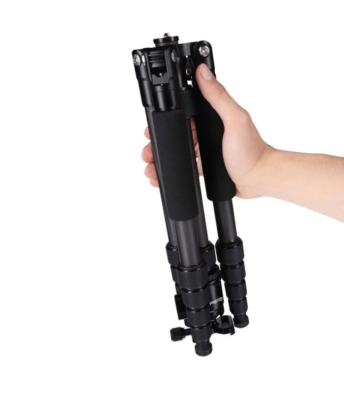 Para el transporte, las patas del trípode se pueden plegar 180 grados, lo que reduce el tamaño del paquete a solo 33 cm.