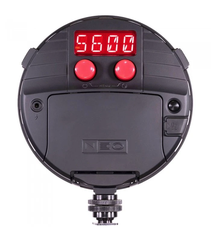 El NEO 2 se puede montar fácilmente usando las tres roscas de trípode de 1/4 «-20 ubicadas alrededor del borde de la luz. También se incluye un adaptador de montaje de zapata para usar el NEO 2 como una luz en la cámara.