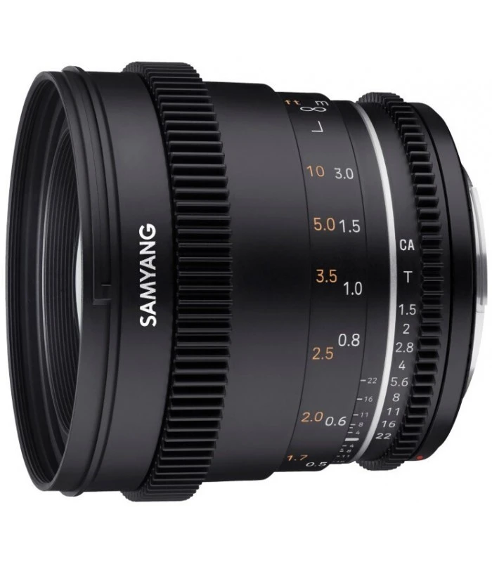 Cada lente de la serie de lentes de cine Samyang VDSLRII MK2 comparte posiciones comunes de anillo de engranaje de iris y enfoque, lo que acelera los cambios de lente, ya que los accesorios como las unidades de enfoque de seguimiento o los motores de iris no tienen que ser reposicionados.