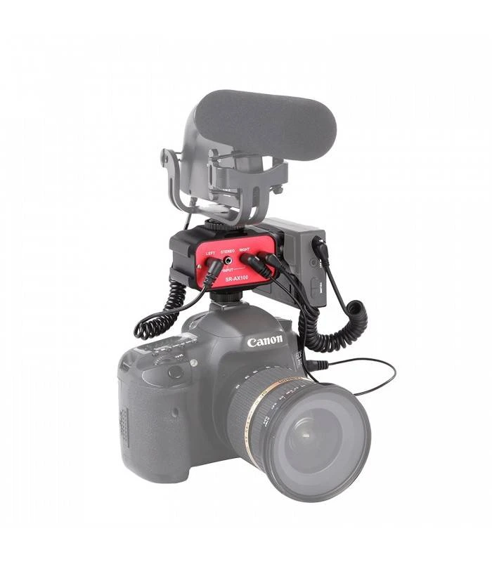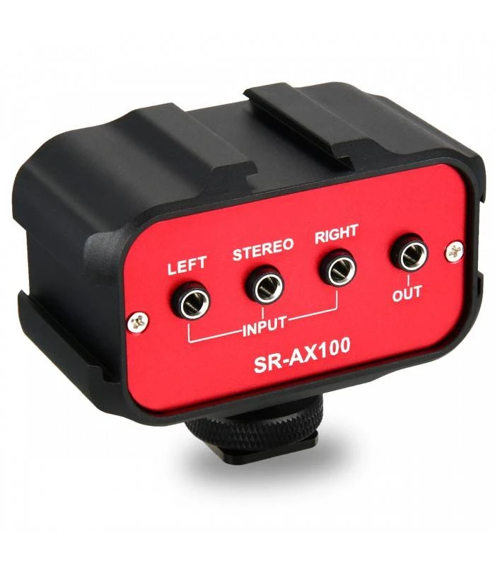 El adaptador de audio Saramonic SR-AX100 te ofrece la posibilidad de situar fuera de la cámara la configuración del audio, a través de un dispositivo intermediario con potenciómetros de ganancia que te permitirá controlar el nivel de audio que entra a la cámara.