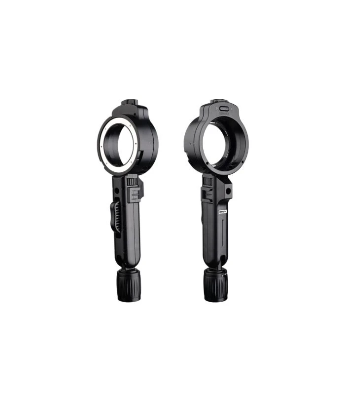 El adaptador C SMDV + empuñadura angular es un adaptador C combinado con una empuñadura angular para uso con flashes Speedlight. El ángulo del Angle Grip es fácilmente ajustable, por lo que puede ajustar fácilmente la dirección de la luz del flash.