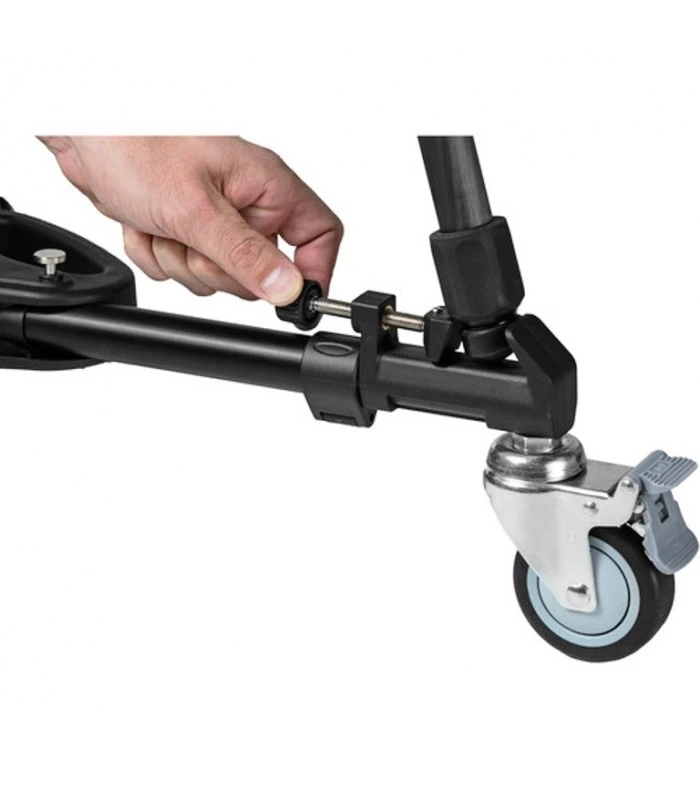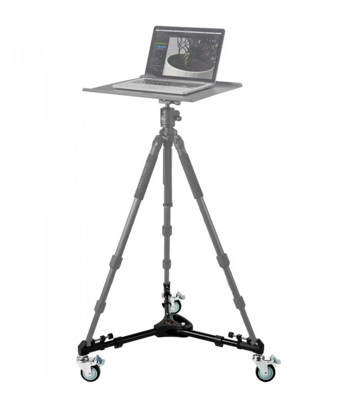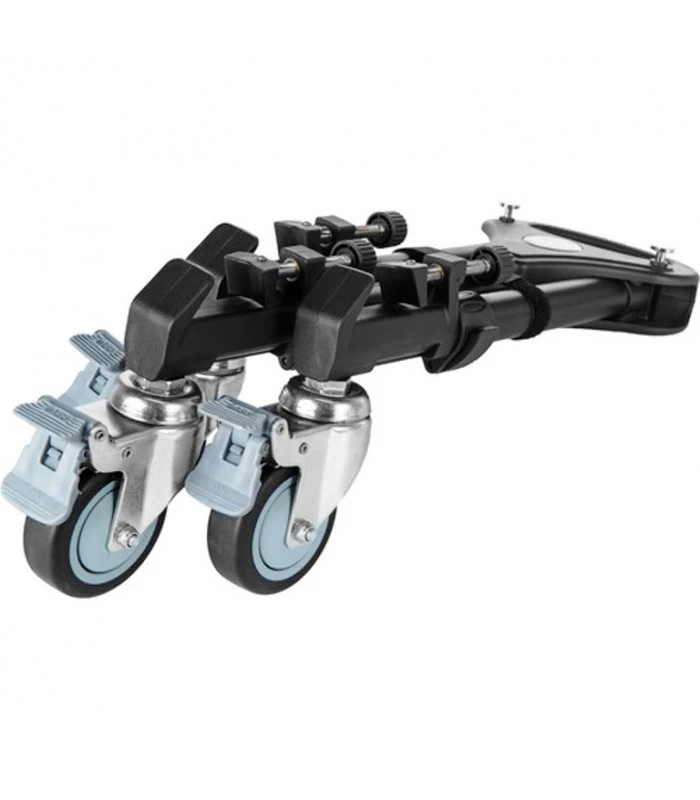 Permitiéndole agregar movilidad a casi cualquier trípode, el Rock Solid Tripod Roller de Tether Tools es una plataforma universal para trípodes para mover rápida y fácilmente una cámara o estación de trabajo montada en un trípode por la habitación. Las ruedas de deslizamiento acolchadas con goma de 3 «permiten un rodamiento suave y cada una incorpora bloqueos de pie individuales para asegurar la plataforma en su lugar. Las patas de la plataforma son extensibles para acomodar trípodes de diferentes alturas y ajustar el diámetro de la base de trabajo entre 23- 31 «. Las patas también cuentan con perillas de apriete fáciles de asegurar para bloquear el trípode en su lugar en la plataforma para una mayor estabilidad. Además, las patas también colapsan para una mayor portabilidad, y un asa incorporada facilita el transporte.