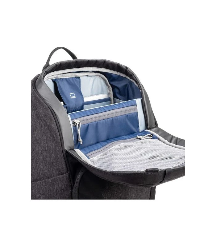 La mochila gris SpeedTop 30 de 30 L de Think Tank Photo tiene dos compartimentos separados para mantener su equipo organizado. El compartimento superior tiene una tapa magnética que puedes abrir fácilmente con una mano. También tiene bolsillos con cremallera para objetos pequeños, así como bolsillos exclusivos para una computadora portátil de 16″ y una tableta de 10″. Estos bolsillos también pueden almacenar documentos A4. El gran compartimento inferior con cremallera ofrece acceso frontal y lateral. Tiene capacidad para un cubo de cámara opcional. La mochila tiene un divisor entre los compartimentos superior e inferior que se puede quitar para crear un compartimento grande.