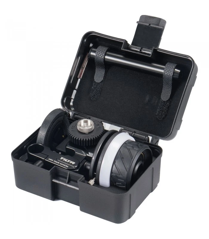Con el enfoque de seguimiento se incluye una correa de engranajes para su lente, un engranaje de transmisión 0.8 MOD y un disco de marcado extraíble. El enfoque de seguimiento se monta en la varilla de 15 mm de largo de 3.9 «incluida usando la abrazadera de varilla simple de 15 mm. La rueda de enfoque gira 360 °, y se incluyen dos tornillos de tope rígido para ajustar sus paradas para que coincidan con su lente. Un estuche rígido es incluido para almacenar y transportar todos los componentes.