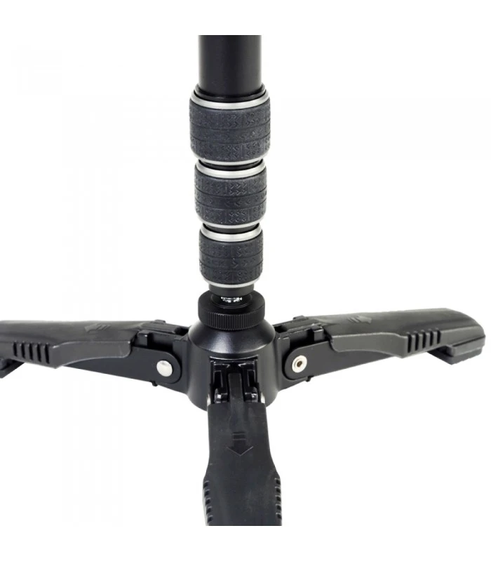 - Sistema de ajuste de ángulo en la base del monopie situado por encima de los pies retráctiles.