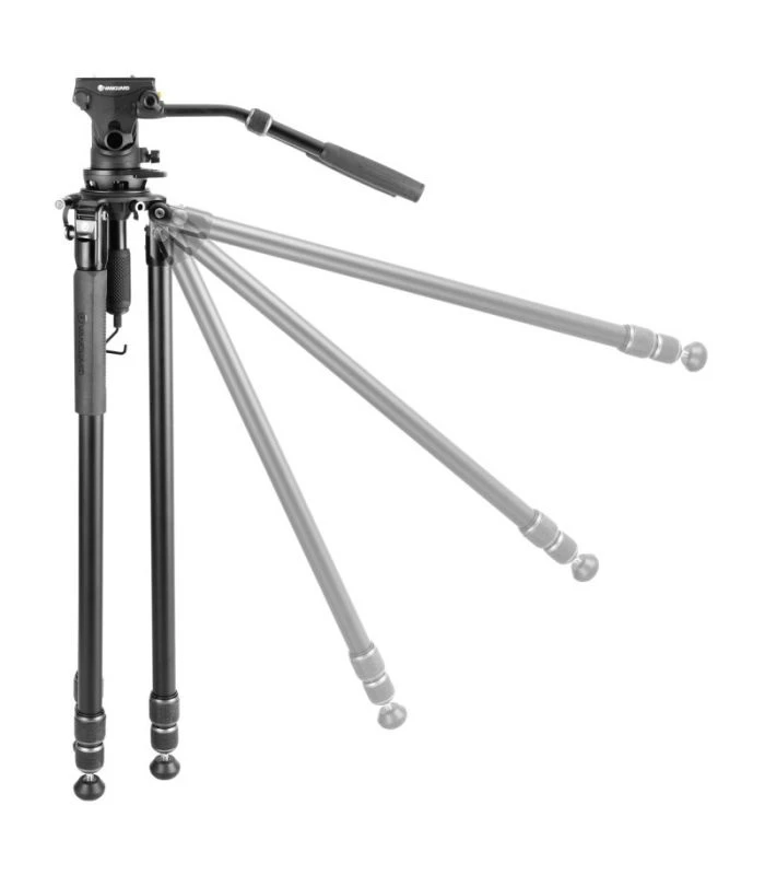 El trípode de aluminio Alta Pro 3VRL 303AV20 incluye una base niveladora de semiesfera extraíble y viene en kit con la rótula de vídeo PV-20 de 2 vías para grabar vídeos estables, e incluso usar con teleobjetivos o telescopios terrestres.