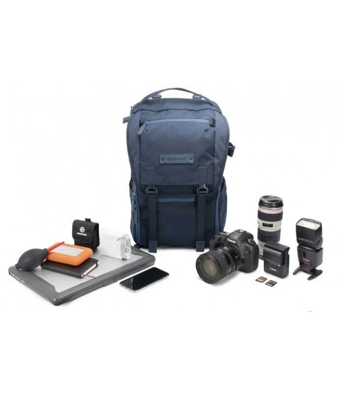 La polivalencia para el material personal y profesional es la clave de esta serie. Veo Range 48 ofrece un inserto bien acolchado en los compartimentos inferiores que permite alojar una cámara digital DSLR con 2 o 3 objetivos incorporados, flash y accesorios esenciales. Alternativamente, puede configurarse para alojar cámaras Mirrorless/CSC/Hybrid con accesorios de vídeo, o un pequeño dron. También encontrará que Vanguard ha atendido necesidades de espacio extra, con un compartimento dedicado a la protección del portátil de 15″ en la parte trasera, un amplio compartimento superior para el transporte personal de comida, gafas de sol, ropa y mucho más, dos bolsillos con cremallera para el smartphone, la cartera y otros objetos necesarios. Un bolsillo trasero secreto para el pasaporte, dos espaciosos bolsillos laterales para para la botella de agua, y un bolsillo para el trípode o monopie. Incluso hay un lazo de seguridad para las llaves, ya que sabemos lo molesto que es llegar a casa después de una aventura y no encontrar la llave.