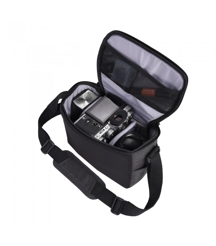 Cuando llevamos equipo compacto, queremos que las bolsas se ajusten perfectamente al equipo que llevamos dentro. VESTA ASPIRE 21 está diseñada para proteger una cámara digital DSLR con un objetivo mediano incorporado, 1 ó 2 objetivos adicionales, un flash y accesorios. Los bolsillos estratégicamente colocados ayudan a organizar todos los demás elementos esenciales, como las tarjetas de memoria, los cables, la batería, el cargador, el teléfono inteligente y también un trípode de mesa Vesta TT1 exactamente donde uno los necesita.