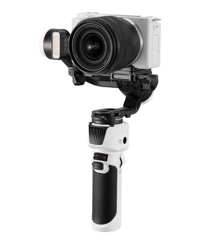 Descubre la máxima versatilidad del gimbal de Zhiyun con este completo kit, que incluye un soporte para estabilizar teléfonos, una práctica mochila de transporte y un resistente trípode de mano. Experimenta todo el potencial de un gimbal que combina potencia, diseño compacto y emocionantes funciones, como el control por Bluetooth, para aprovechar al máximo tus momentos creativos.
